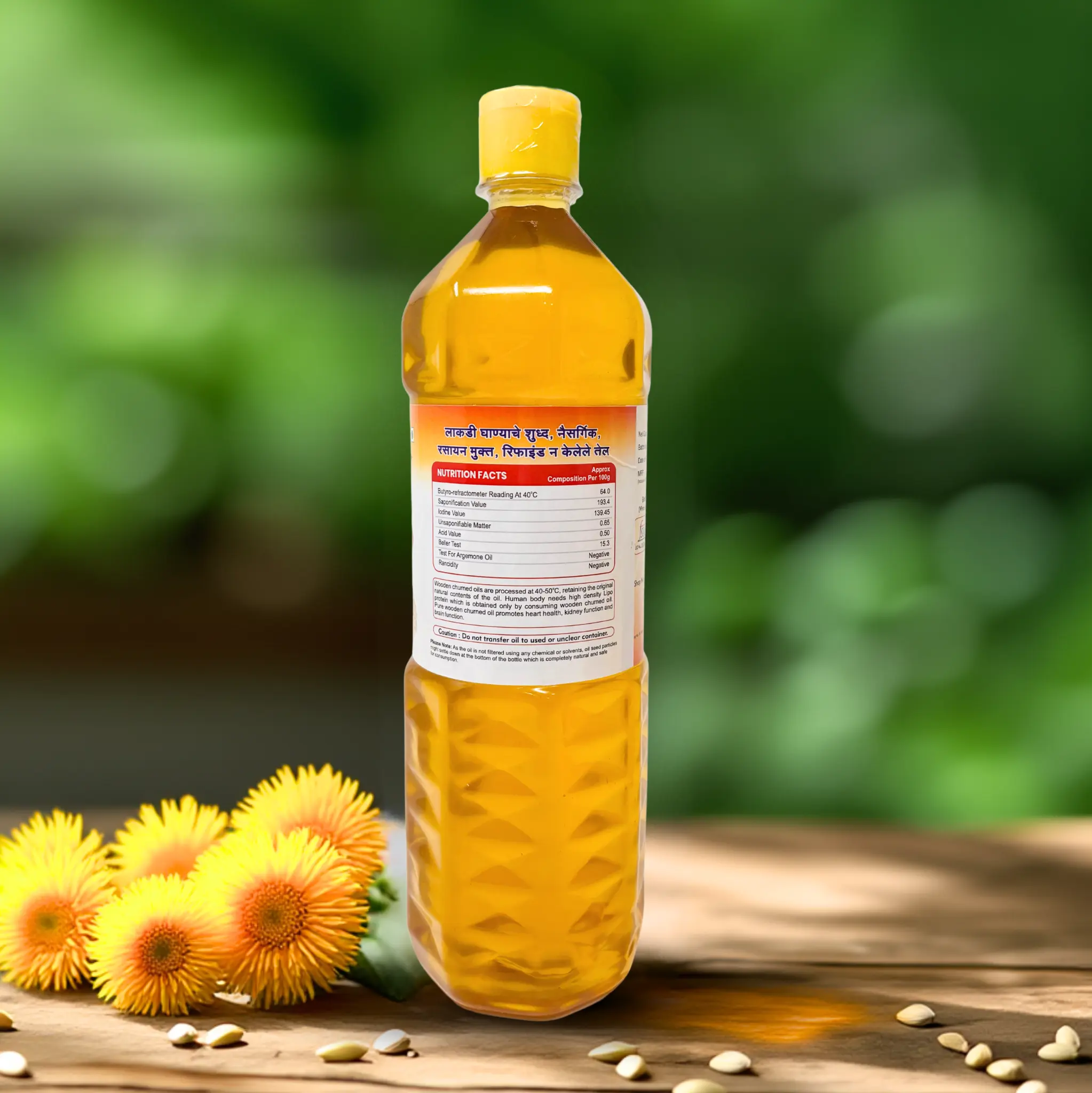 Pure wood-pressed safflower oil, traditionally extracted to retain natural nutrients, mild aroma, and healthy goodness for everyday cooking.